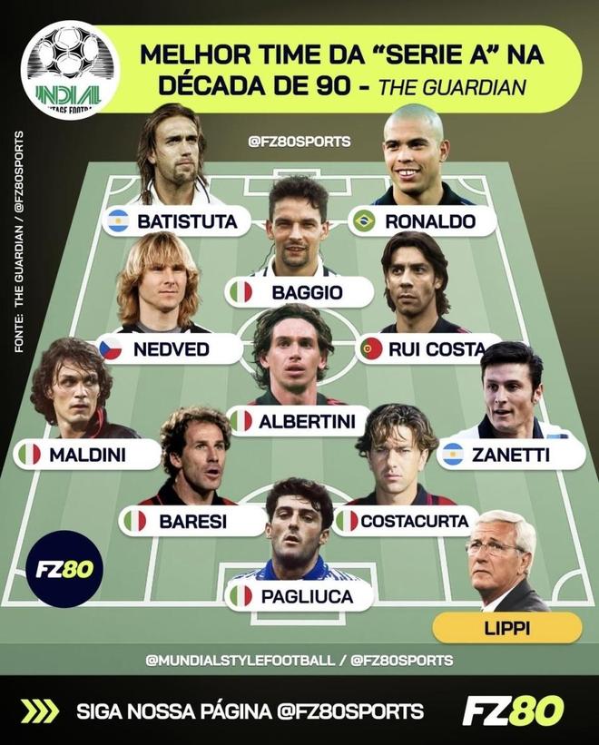 最近《卫报》评出了90年代意甲最佳阵容,巴蒂斯图塔、罗纳尔多、巴乔、马尔蒂尼这些名字全部在列。这套名单几乎把那一代意甲锋线、前腰和后防的大牌全都堆在了一起,却看不到德尔皮耶罗、维埃里等代表人物,让不少球迷有点惊讶。同样的11个人如果放到今天,还能被视作什么级别的实力标杆?下面就按位置把这份阵容完整摆出来,让大家自己去感受一下差距。